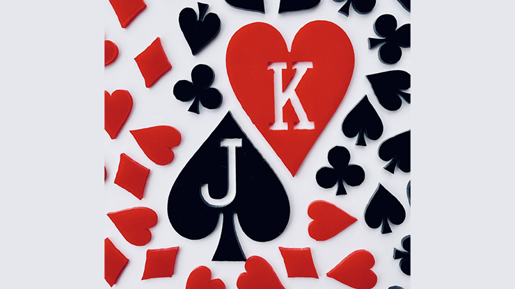 Effect 3: A spectator freely selects a card. The magician holds the card and gives it a gentle press. All the suit fragments fall out, and the card held in the magician's hand turns blank.
