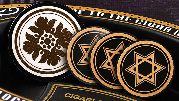 Next, the magician presents an envelope, explaining that it contains a prediction. The spectator is asked to freely select one of the tokens from their hand and place it face-down on the table.